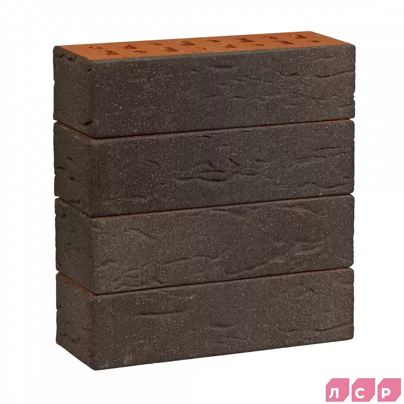 Клинкерный кирпич ЛСР Клинкер лицевой тёмно-красный с черным песком Лиссабон, поверхность винтаж