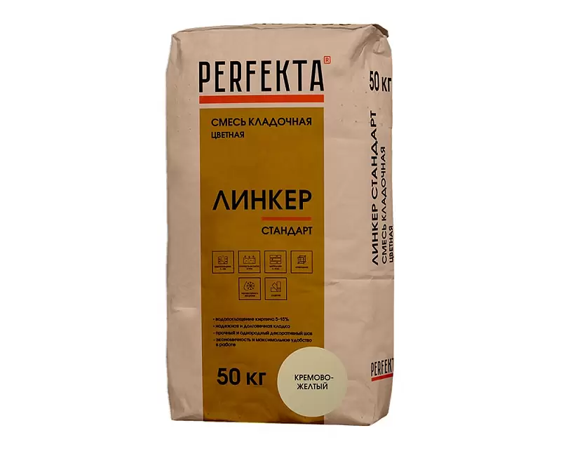 Сухие строительные смеси PERFEKTA Смесь кладочная цветная Линкер Стандарт кремово-желтый, 50 кг